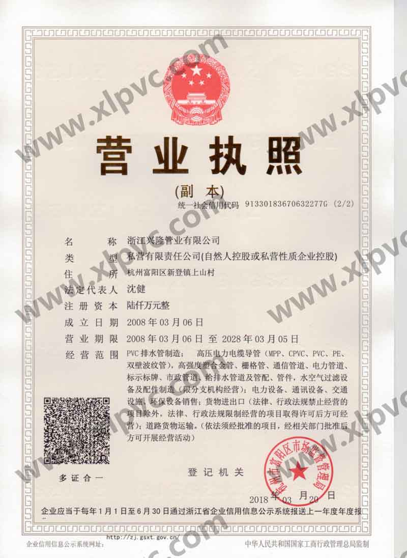 浙江興隆管業(yè)有限公司位于杭州市富陽(yáng)區(qū)(杭州第九新區(qū)),坐落在新登鎮(zhèn),相距杭州僅60公里,水、陸、空交通運(yùn)輸十分便利。浙江興隆管業(yè)有限公司前身為富陽(yáng)興隆塑料制品廠,成立于1992年,2008年改名浙江興隆管業(yè)有限公司,數(shù)十年來(lái),公司一直至力于管道的生產(chǎn),目前公司擁有國(guó)內(nèi)先進(jìn)的CPVC保護(hù)管生產(chǎn)線,HPVC()雙壁波紋管生產(chǎn)線,多孔管生產(chǎn)線,玻璃鋼電纜保護(hù)管生產(chǎn)線、MPP電纜保護(hù)管生產(chǎn)線。生產(chǎn)的主要產(chǎn)品有:CPVC電纜保護(hù)管、MPP電力電纜保護(hù)管(頂管)、高強(qiáng)度塑合金管、HDPE給排水管、HPVC()雙壁波紋管、玻璃鋼電纜保護(hù)管、埋地通信用的PVC-U多孔管、PE直壁管、PVC-U雙壁波紋管、梅花管等,年生產(chǎn)能力達(dá)20000萬(wàn)米。